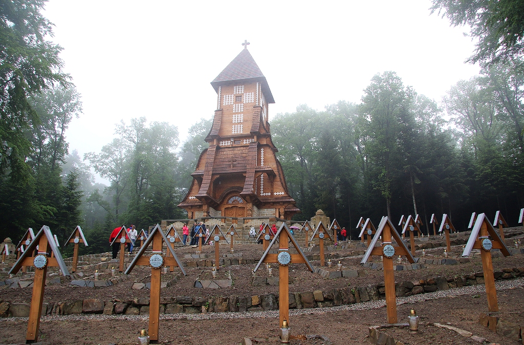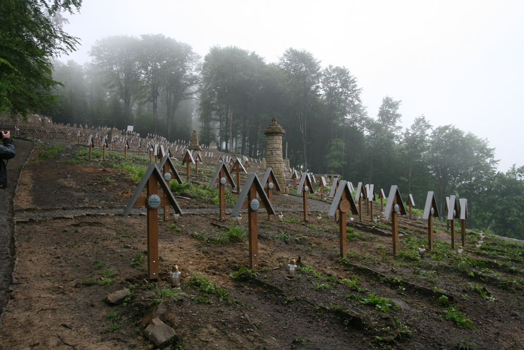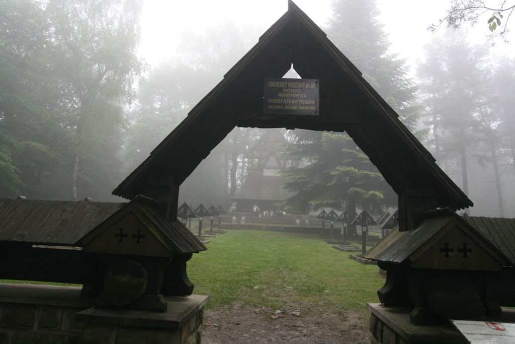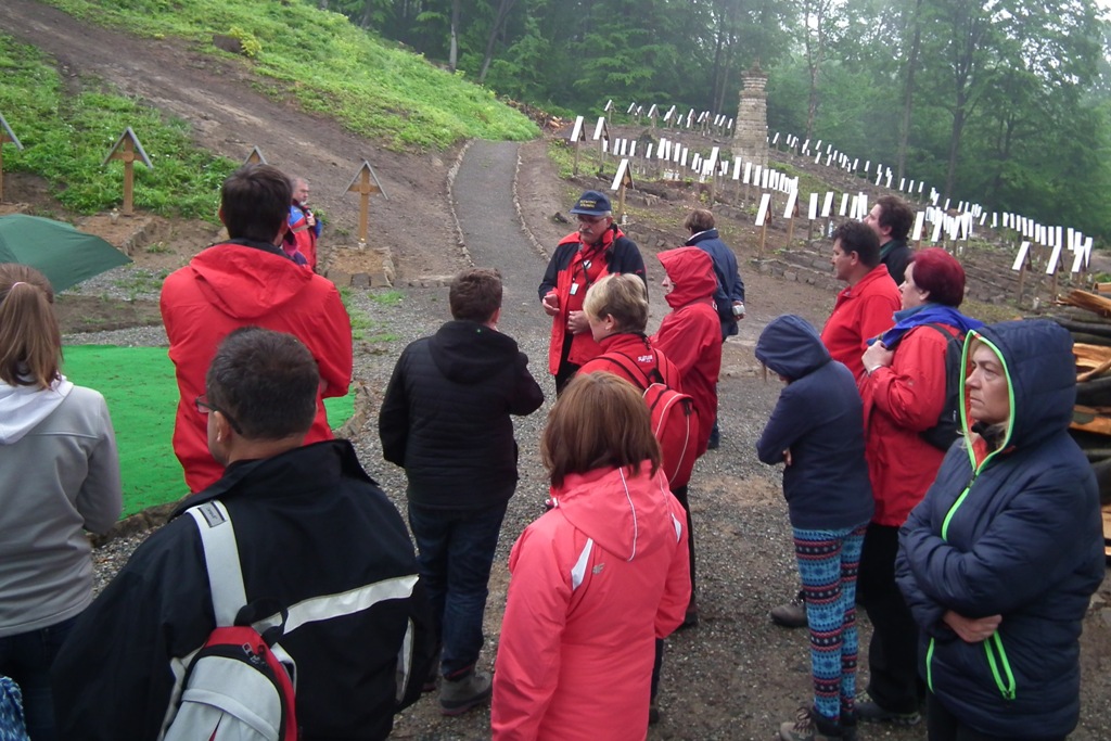 Wycieczkę rozpoczęliśmy od zwiedzenia odbudowanego cmentarza na wzgórzu Pustki k. Łużnej. W walkach w tym rejonie brała udział 12 dywizja Piechoty (Krakowska) w skład której wchodziły m.in. 20 nowosądecki, 56 wadowicki, 57 tarnowski i 100 cieszyński pułk piechoty. Ten ostatni dowodzony był przez płk. Franciszka Latinika. Artylerią dywizyjną dowodził gen. Tadeusz Jordan Rozwadowski. W miejscu bitwy powstał cmentarz wg koncepcji Jana Szczepkowskiego, na którym spoczywa ponad 1200 żołnierzy. 25-metrową kaplicę zaprojektował Duszan Jurkowicz.