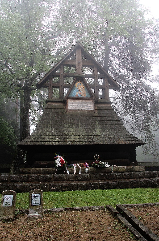 Trzecim cmentarzem na naszej trasie to obiekt na Przełęczy Małastowskiej. Głównym akcentem cmentarza, jest „drewniany ołtarz” z kopią obrazu Matki Boskiej Częstochowskiej. Płaskorzeźbę wykonał Czech Adolf Kaszpar.