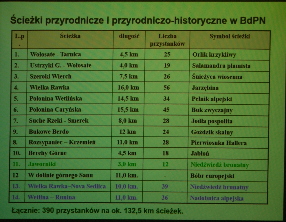 Blisko 8 – godzinne zajęcia, zakończone testem, odbyły się w Ośrodku Naukowo Dydaktycznym BdPN w Ustrzykach Dolnych. Program szkolenia obejmował pełną charakterystykę geograficzno-przyrodniczą Bieszczad, wraz z zagadnieniami ochrony i edukacji.