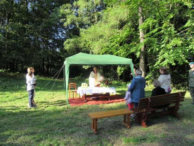 Organizatorzy i uczestnicy Złazu składają ta drogą również szczególne podziękowania Państwu Teresie i Markowi Krajewskim, za udostępnienie prywatnego terenu, na którym odbyło się zakończenie Złazu, przygotowanie ołtarza polowego i udekorowanie kapliczki.