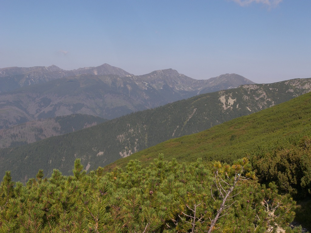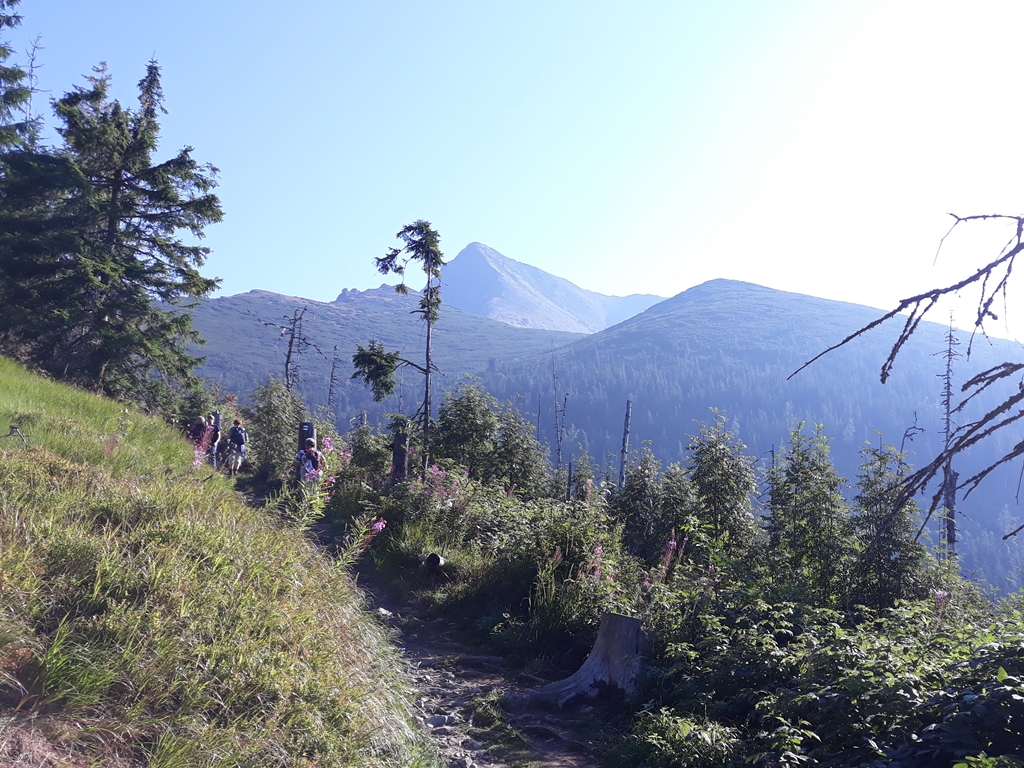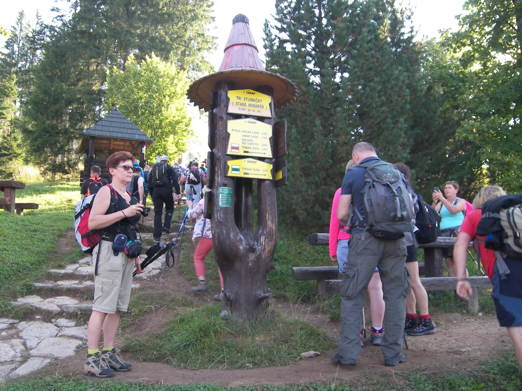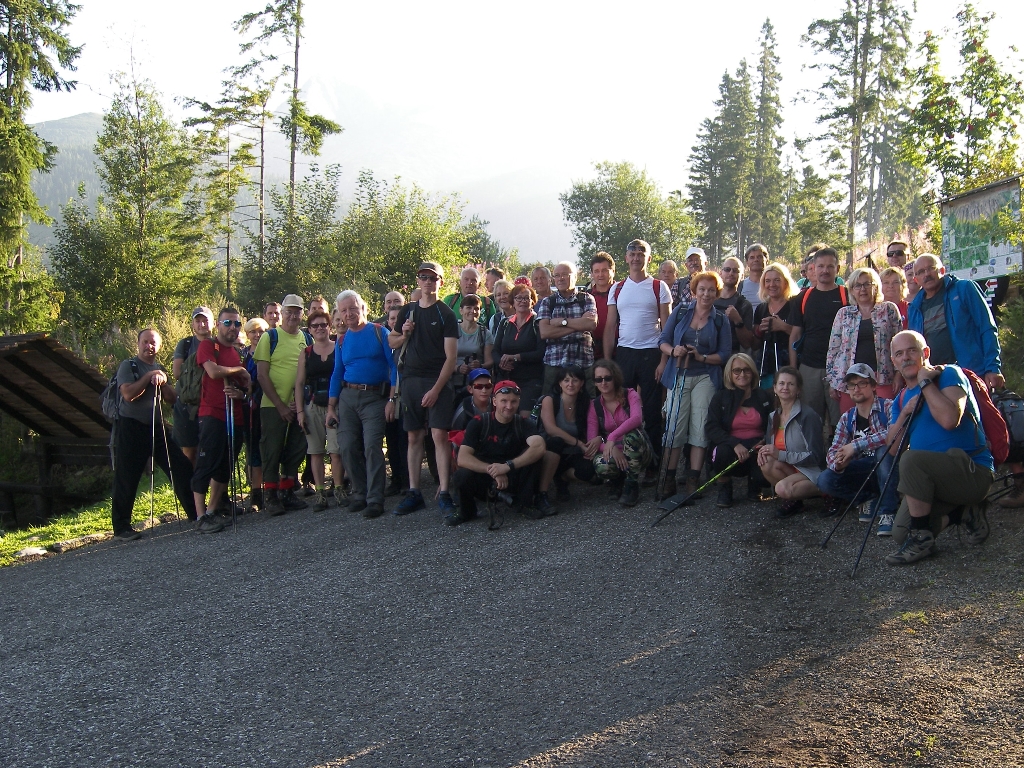 Wycieczkę pieszą rozpoczęliśmy przy byłym Schronisku Ważeckim (spotkanie ze Słowakami). Następnie przeszliśmy w dół do Trzech Źródeł. Tu rozpoczyna się „zielony” szlak na Krywań, który prowadzi Stokami Gronnika oraz Niżniej i Wyżniej Przehyby, krawędzią Wielkiego Żlebu do rozdroża pod Krywaniem. Ze szlaku podziwiamy panoramę Tatr Zachodnich.