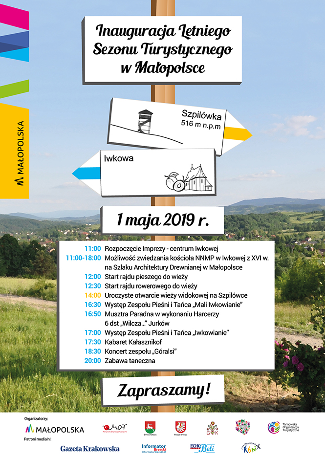 Zapraszamy na majówkę na Pogórzu Wiśnickim! Otwórzmy wspólnie letni sezon turystyczny w Małopolsce 1 maja w Iwkowej – urokliwej miejscowości słynącej z suszonych śliwek i zabytkowego, XVI-wiecznego kościoła, leżącego na Szlaku Architektury Drewnianej. Tego dnia otworzymy nie tylko sezon letni, ale także nową, 34-metrową wieżę widokową na Szpilówce. Warto tu zawędrować w poszukiwaniu malowniczych widoków oraz, by skorzystać z innych przygotowanych na ten dzień atrakcji. Najlepsze widoki na lato tylko ze Szpilówki!