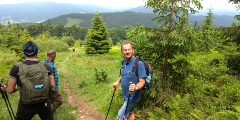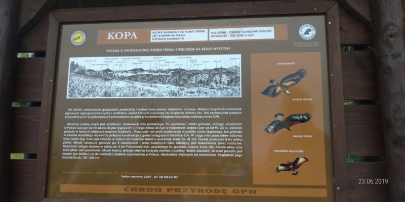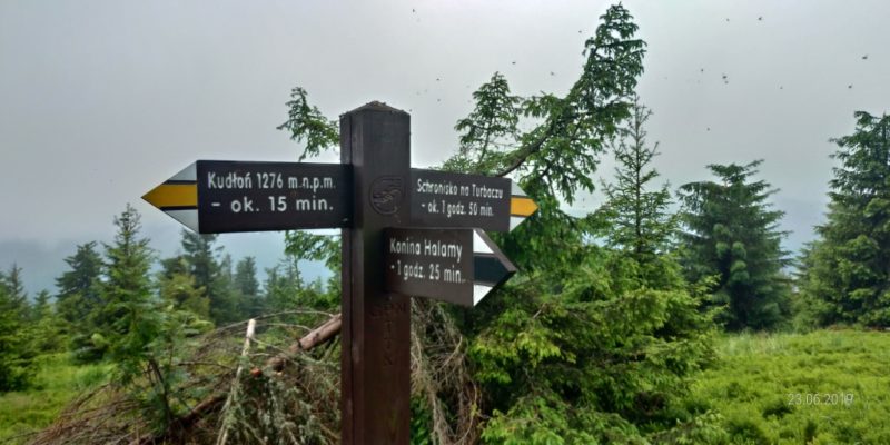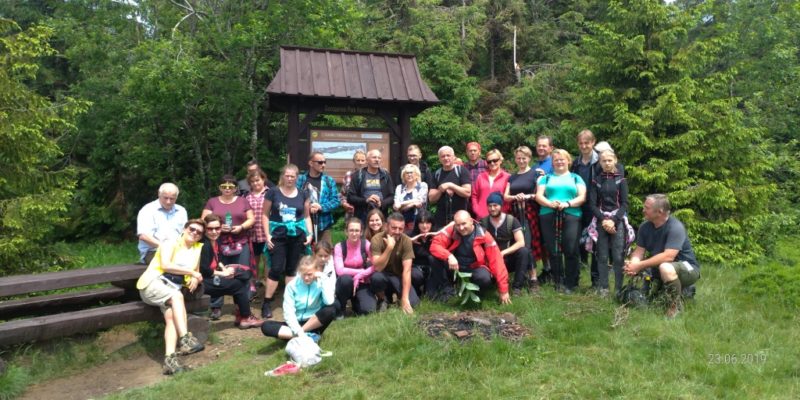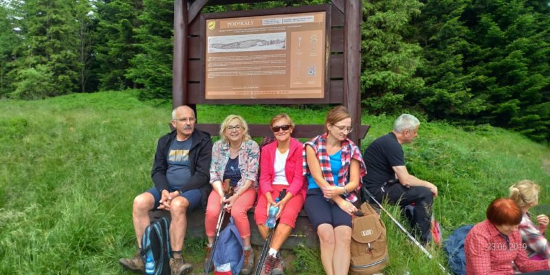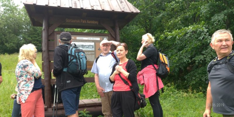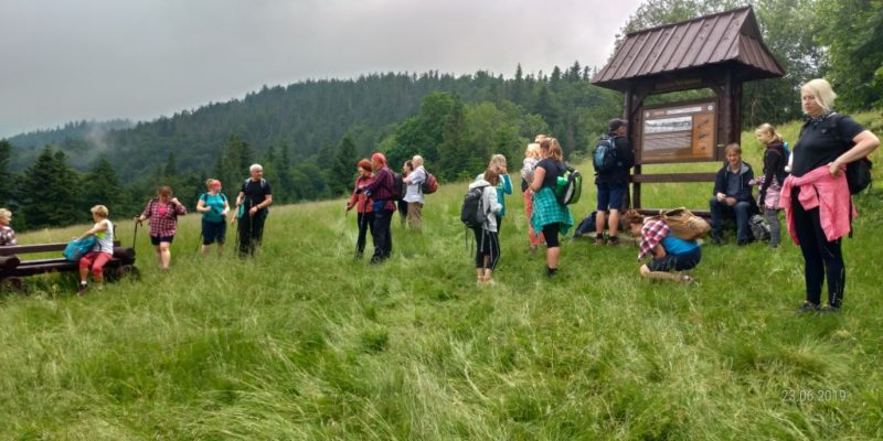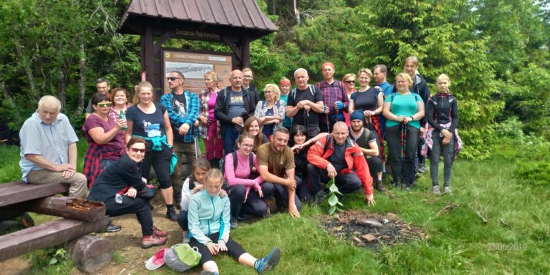 23 czerwca 2019r. odbyła się wycieczka autokarowo – piesza z cyklu „Wakacje z Przewodnikiem”. Tym razem w masyw Kudłonia, ważną część Gorców. Z Limanowej wyjechaliśmy kilka minut po dziewiątej i poprzez Zamieście, Tymbark, Podłopień, Dobrą, Gruszowiec, Kasinę Wielką dotarliśmy do Mszany Dolnej. Po drodze mogliśmy – jak zawsze – podziwiać wybitne, a zarazem znajome nam szczyty Beskidu Wyspowego: Łopień, Zęzów, Śnieżnicę, Ćwilin, Jasień, Lubogoszcz, Ciecień,Wierzbanowską Górę, Lubomir, Luboń Wielki i – oczywiście – Mogielicę. Z Mszany Dolnej udaliśmy się w górę potoku Porębianka, przejeżdżając przez miejscowości Podobin i Niedźwiedź, po czym skręcając w lewo, w towarzystwie potoku Konina, przemierzaliśmy wieś o tej samej nazwie. Towarzyszyły nam widoki na coraz wyższe szczyty gorczańskie: Pieronkę, Gębową, Turbaczyk. W górnej części wsi koniec jazdy – osiedle Halamy.