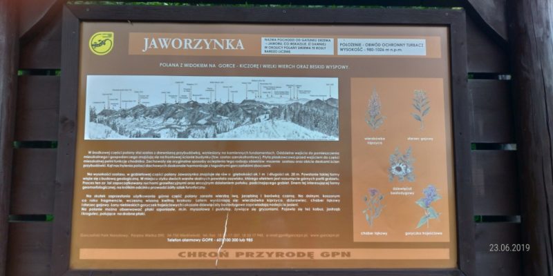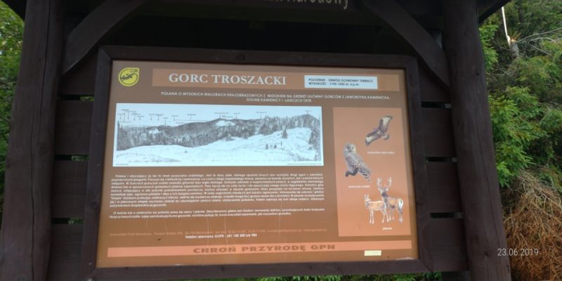 Wspomniany żółty szlak to „klasyk” wśród szlaków gorczańskich – wyznakowany przez słynnego taternika (twórcę m.in. tatrzańskiej Orlej Perci) ks. Walentego Gadowskiego, jeszcze w latach dwudziestych XX w., by ułatwić podziwianie Gorców i ich przepięknych polan. Z polany Pustak blisko już na Kudłoń (1274 m. n,p.m.), czwarty z kolei szczyt gorczański – po Turbaczu(1310), Jaworzynie Kamienickiej(1288) i Kiczorze (1282). A następnie te polany – co jedna to ładniejsza, tym bardziej, że pogoda była dla nas coraz to łaskawsza – Gorc Troszacki, Jadamówka i Podskały – wręcz zmuszają do dłuższego odpoczynku i refleksji. Wreszcie Jaworzynka nad Lubomierzem, skąd wspaniały widok na najwyższą część Beskidu Wyspowego z Mogielicą, Ćwilinem i Jasieniem. Schodzimy w dół, na Przełęcz Przysłop w Rzekach, Koniec spaceru, który w swojej znakomitej części prowadził nas szlakami Gorczańskiego Parku Narodowego. Widzieliśmy często osłabione i zniszczone drzewa, zwłaszcza świerki. Przykre to trochę, ale taka jest naturalna przebudowa drzewostanu w GPN. Trwa to powoli, lecz Park ma czas. Gorzej z polanami – zarastają coraz szybciej, przyszłe pokolenia już nie będą miały takich widoków.