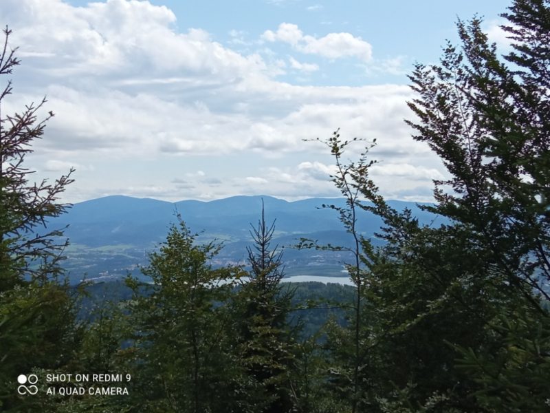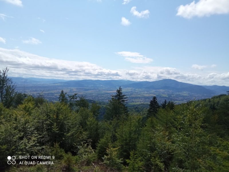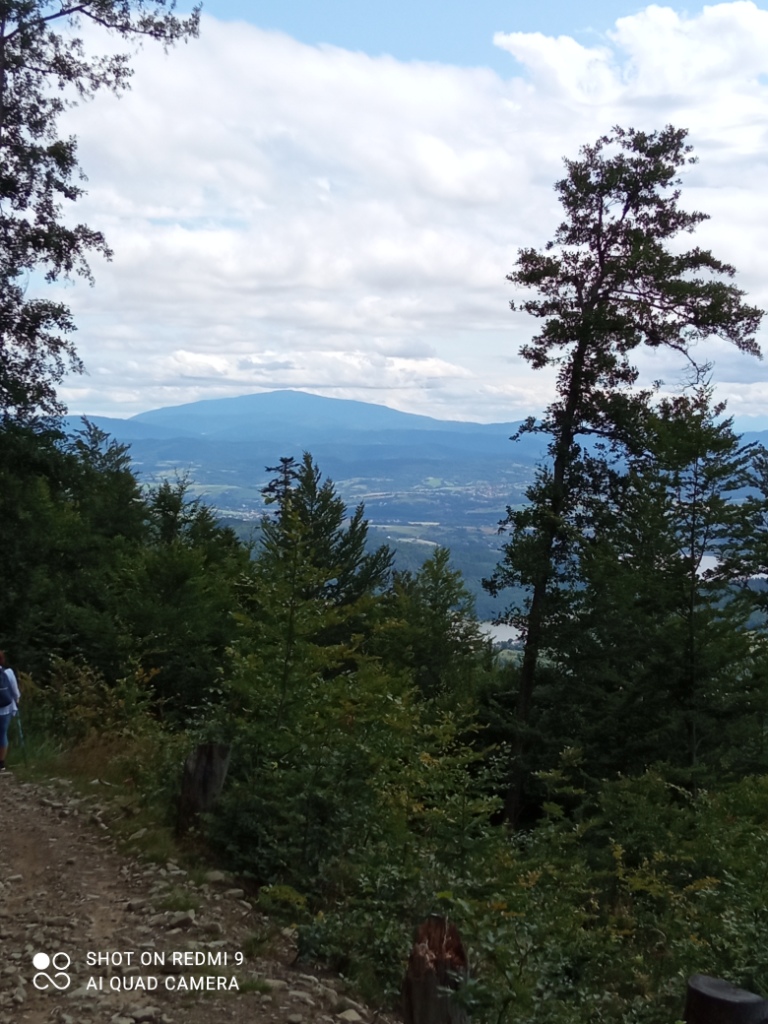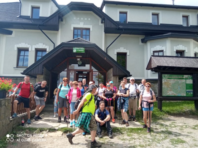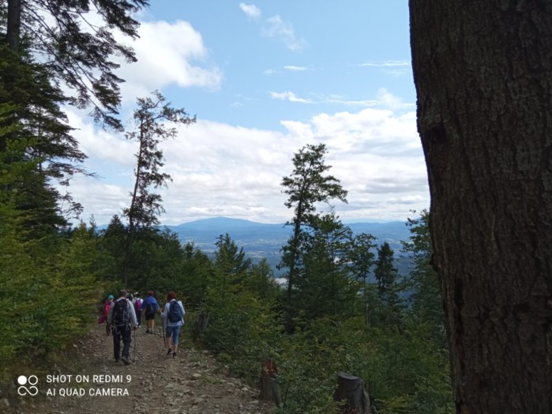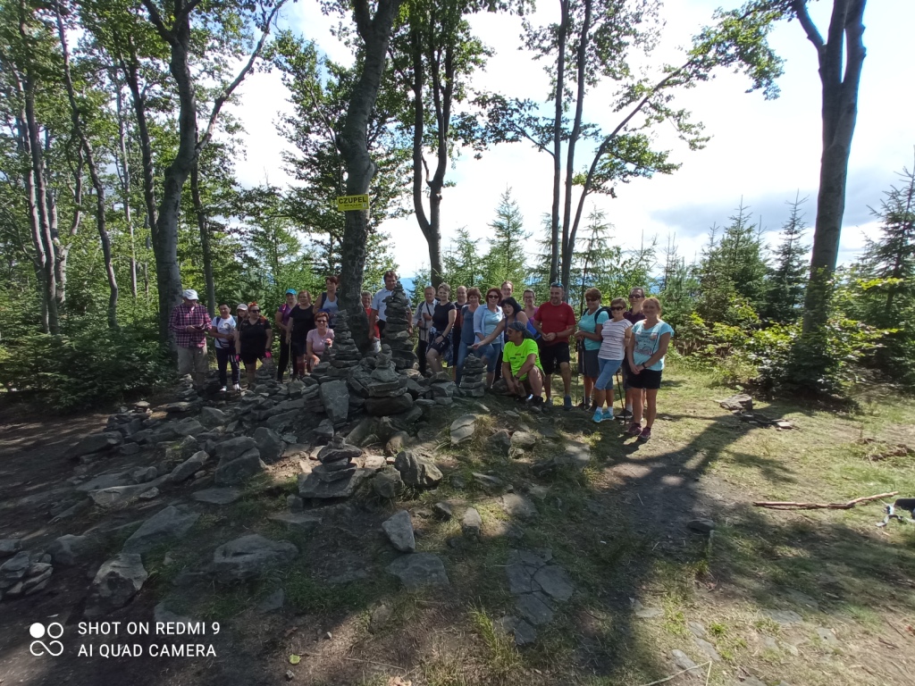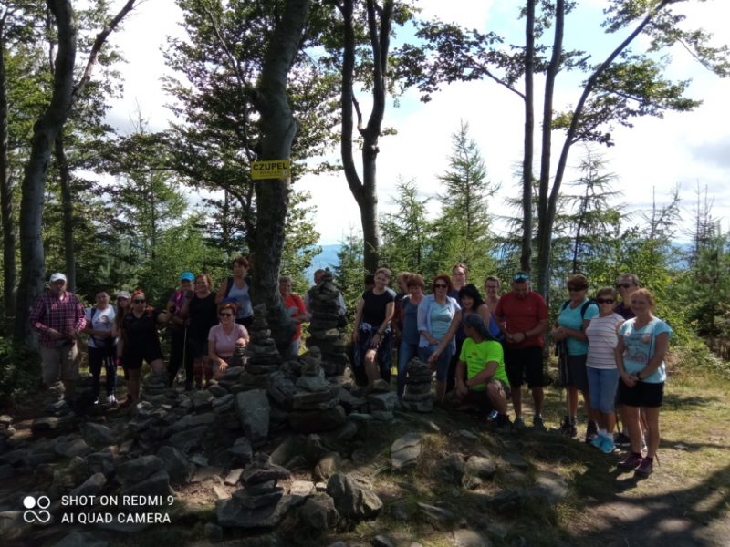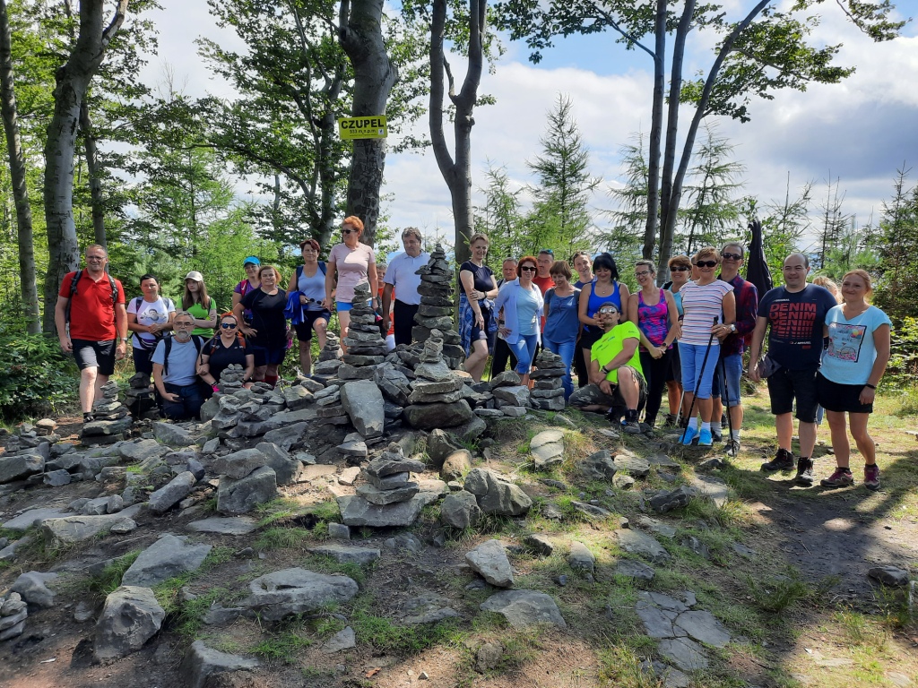 W niedzielę 8 sierpnia 2021 roku wybraliśmy się autokarem na wycieczkę. Z początku humory nam nie dopisywały, ponieważ całą drogę straszyło deszczem. Gdy wyszliśmy z pojazdu – jak na zamówienie-pojawiło się słońce. Dzisiejszym celem była wędrówka po Beskidzie Małym, leżącym pomiędzy Suchą Beskidzką, Żywcem, Andrychowem , Bielsko-Białą, a Wadowicami. Naszą wędrówkę rozpoczęliśmy z przełęczy Przebieg szlakiem niebieskim w kierunku najwyższego szczytu tego pasma Czupel. Szło się przyjemnie. Idąc z schroniska położonego na Magurce Wilkowickiej podziwialiśmy panoramę Beskidu Śląskiego i Żywieckiego.