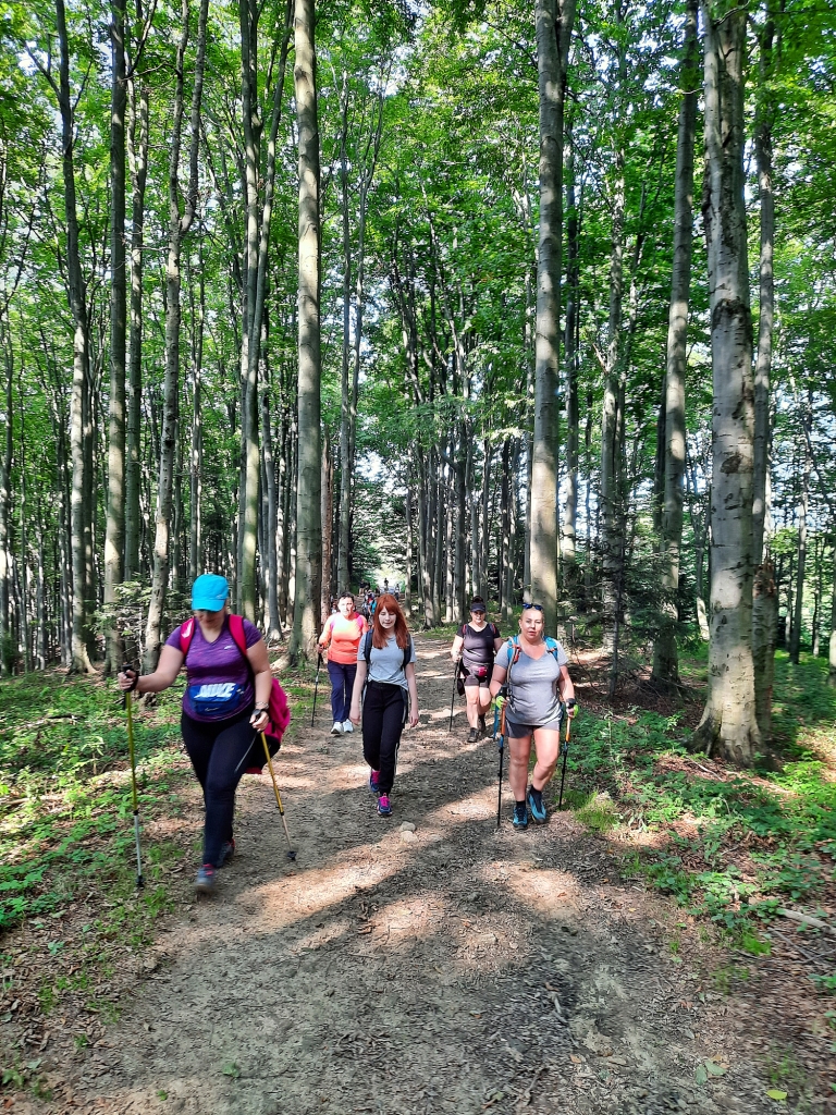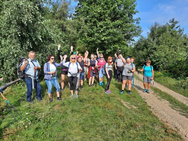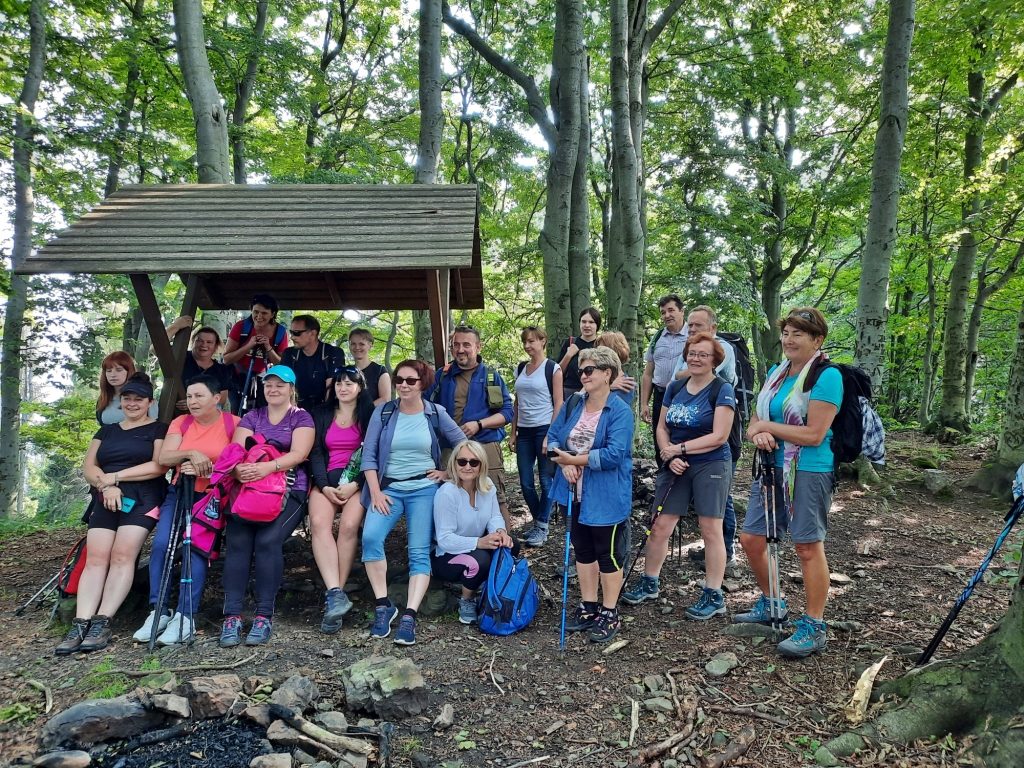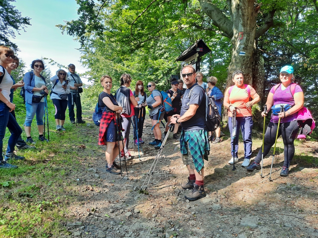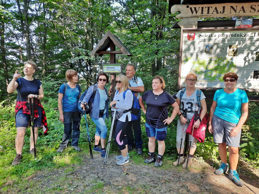 Uczestnicy wycieczki przeszli trasę z Sarczyna przez Sałasz i Jaworz do Męciny. Na polanie Pod Jaworzem rozpaliliśmy ognisko i odbyło się grillowanie na zakończenie prowadzonej akcji „Wakacji z Przewodnikiem”. Na trasie wędrówki podziwialiśmy dorodne lasy bukowe i łany kwiatów polnych takich jak: Smotrawa okazała, Starzec Fuchsa, Tojeść pospolita, Goryczka trojeściowata, Niecierpek gruczołowaty (himalajski) i. in.