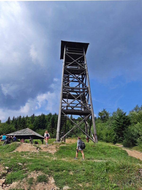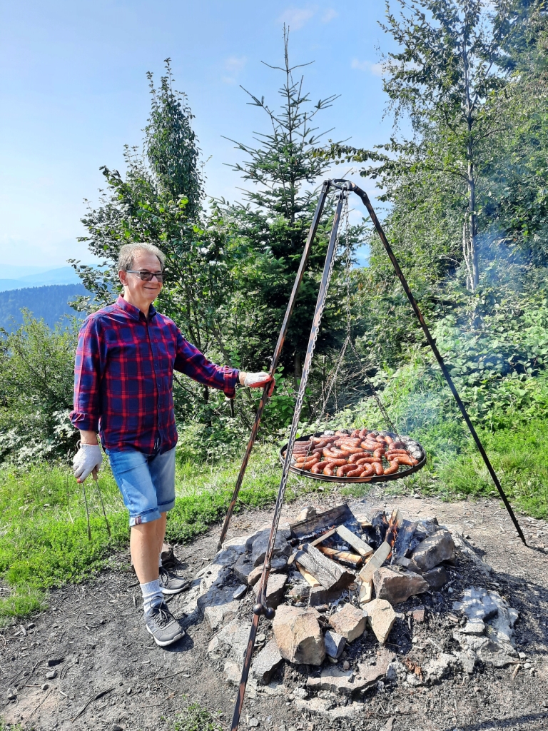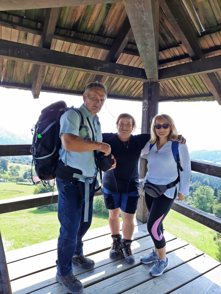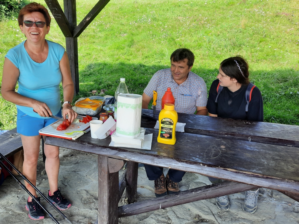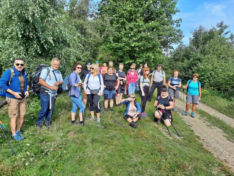 Uczestnicy wycieczki przeszli trasę z Sarczyna przez Sałasz i Jaworz do Męciny. Na polanie Pod Jaworzem rozpaliliśmy ognisko i odbyło się grillowanie na zakończenie prowadzonej akcji „Wakacji z Przewodnikiem”. Na trasie wędrówki podziwialiśmy dorodne lasy bukowe i łany kwiatów polnych takich jak: Smotrawa okazała, Starzec Fuchsa, Tojeść pospolita, Goryczka trojeściowata, Niecierpek gruczołowaty (himalajski) i. in.