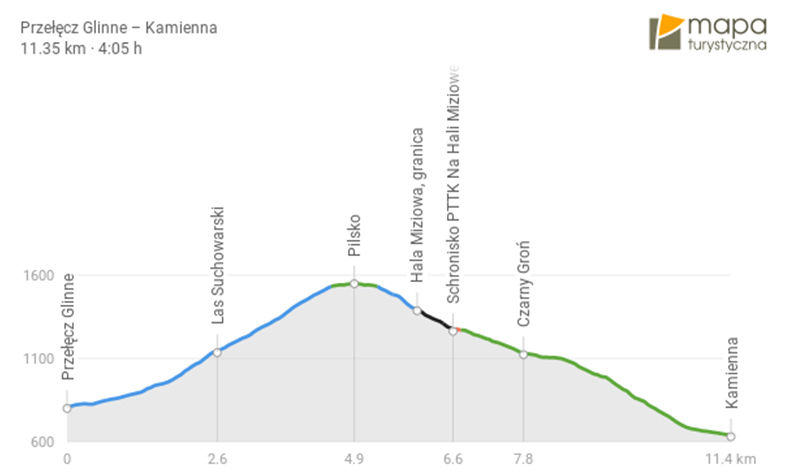 Trasa piesza: Przełęcz Glinne – Pilsko – schronisko PTTK na Hali Miziowej – Korbielów (w przypadku złych warunków atmosferycznych trasa może ulec zmianie).